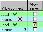 The Allow Connect column displays each application's current access rights for each zone. To change the access rights, click on one of the three buttons in the Connect column:
