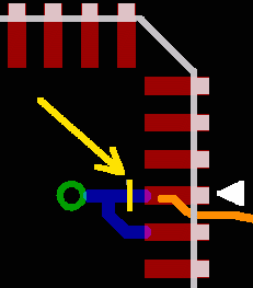 Pin des Moduls verbunden) ging -wie beschrieben- eine Leiterbahn aus,