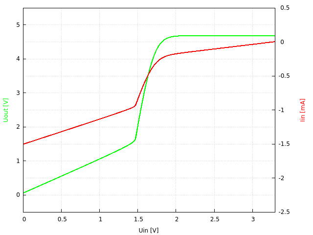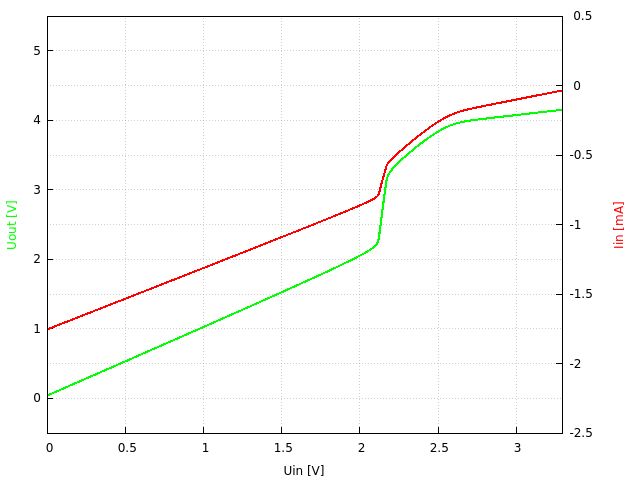 3.3V → 5V, Ausgangsspannung und Eingangsstrom gegenüber Eingangsspannung