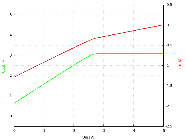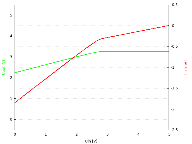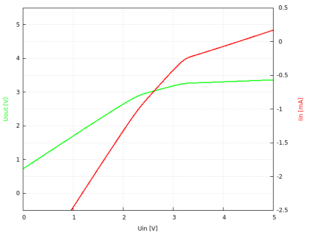 5V → 3.3V, Ausgangsspannung und Eingangsstrom gegenüber Eingangsspannung