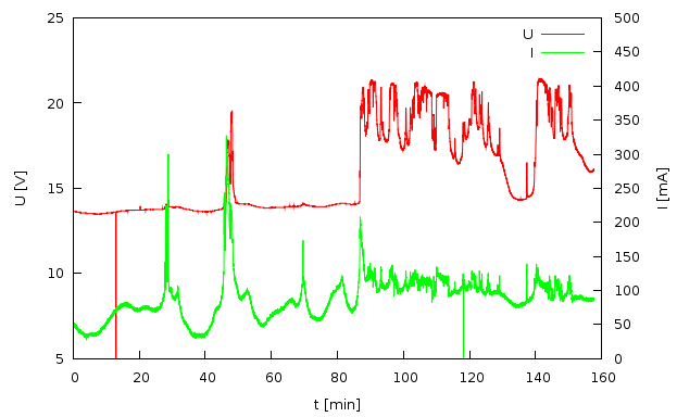 (für ein paar µS) aktiviert, und eine erneute Messung von Spannung und