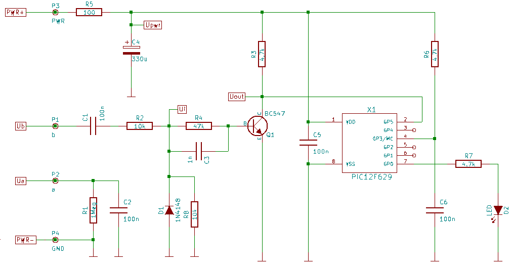 Zur Optimierung der Schaltung und der Bauteilwerte verwendete ich eine Simulation mittels ngspice, welches es u.a. erlaubt, eine Spannungsquelle mit einem vorgegebenen Signalverlauf zu simulieren. Somit konnte ich meine Schaltung gleich mit den bisher ermittelten Messdaten simulieren. |